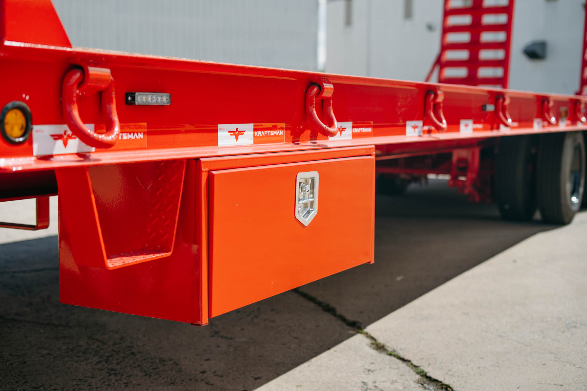 Kraftsman's HP-40 50K 20 Ton Pintle Heavy Equipment Trailer is constructed with a 14" I-beam main frame and tongue, 4" pierced crosspieces throughout the main beam on 16" centers, and an 8" channel side rail with knee braces.
